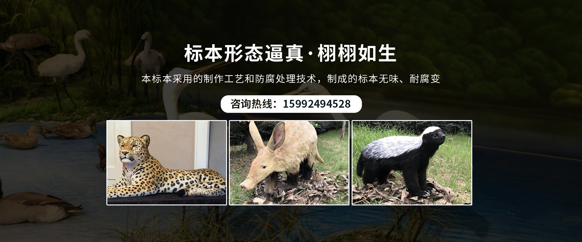 广州东家生态用标本有限公司(简称:东家生态)是一家专业仿生仿真工艺标本制作、销售、租赁、维护。主营:兽类、鸟类、水生海洋类、古生物类仿生仿真工艺标本制作(虎、豹、大熊猫、大象、长颈鹿、狒狒、抹香鲸、)等………………